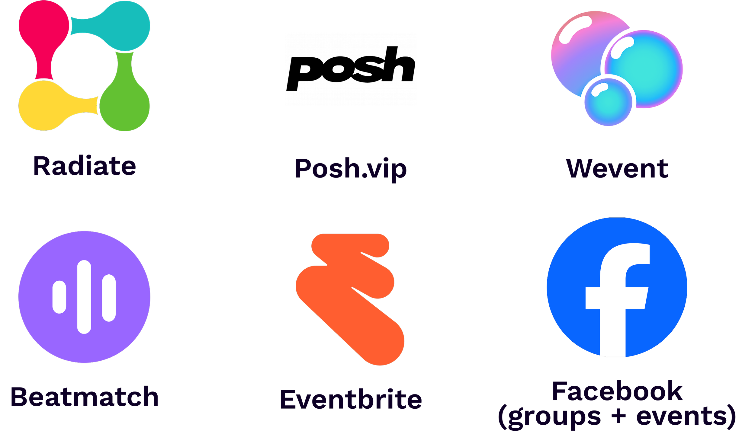 There is no single platform that exists that intersects event discovery, ticketing and social networking seamlessly. Radiate comes the closest, but only features EDM-centered events.