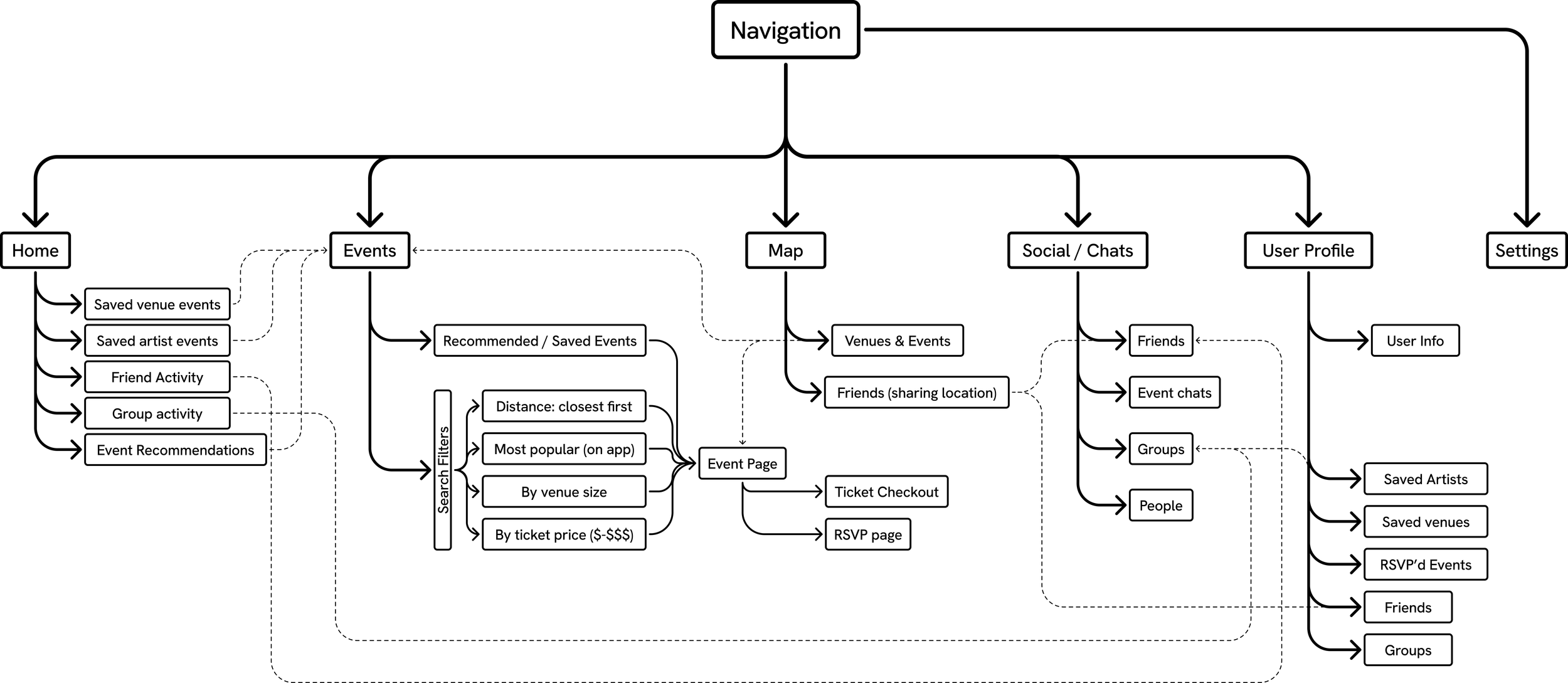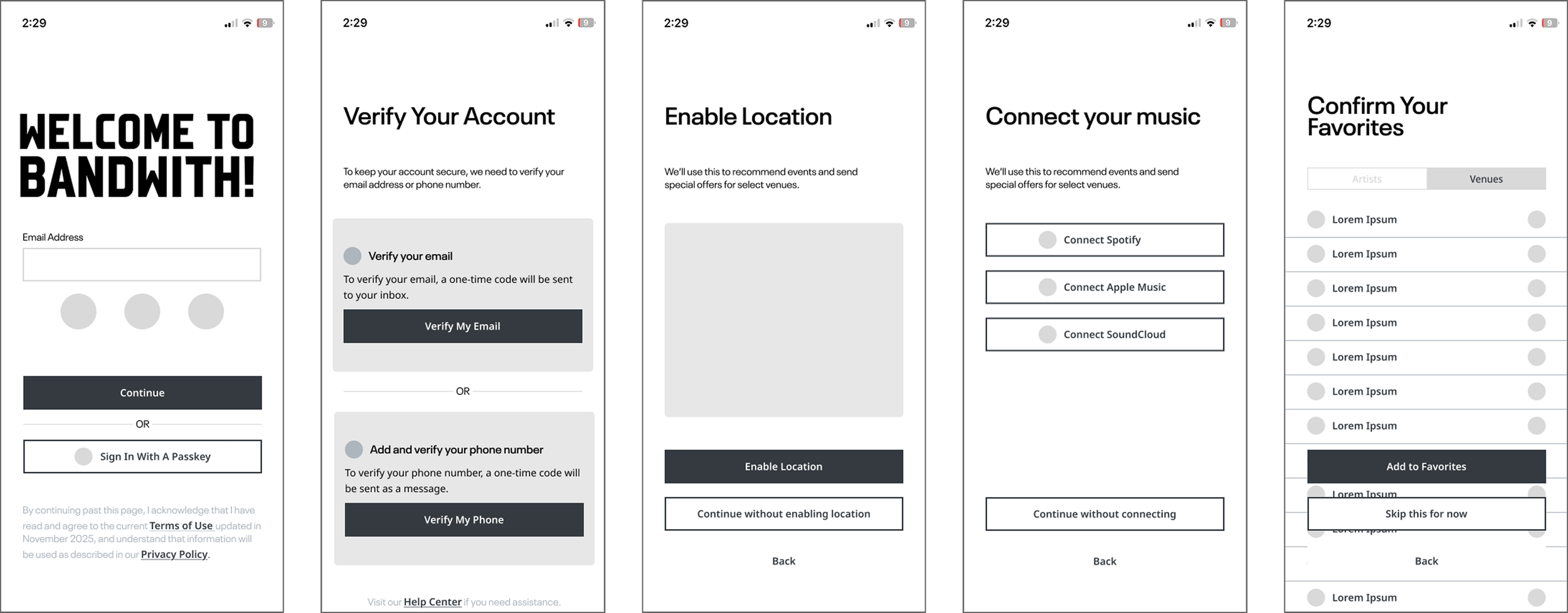 To see what was already out there, I compared and contrasted six existing platforms that focused on live music and event planning. (Fun fact: Radiate was the primary inspiration for Bandwith’s concept.)