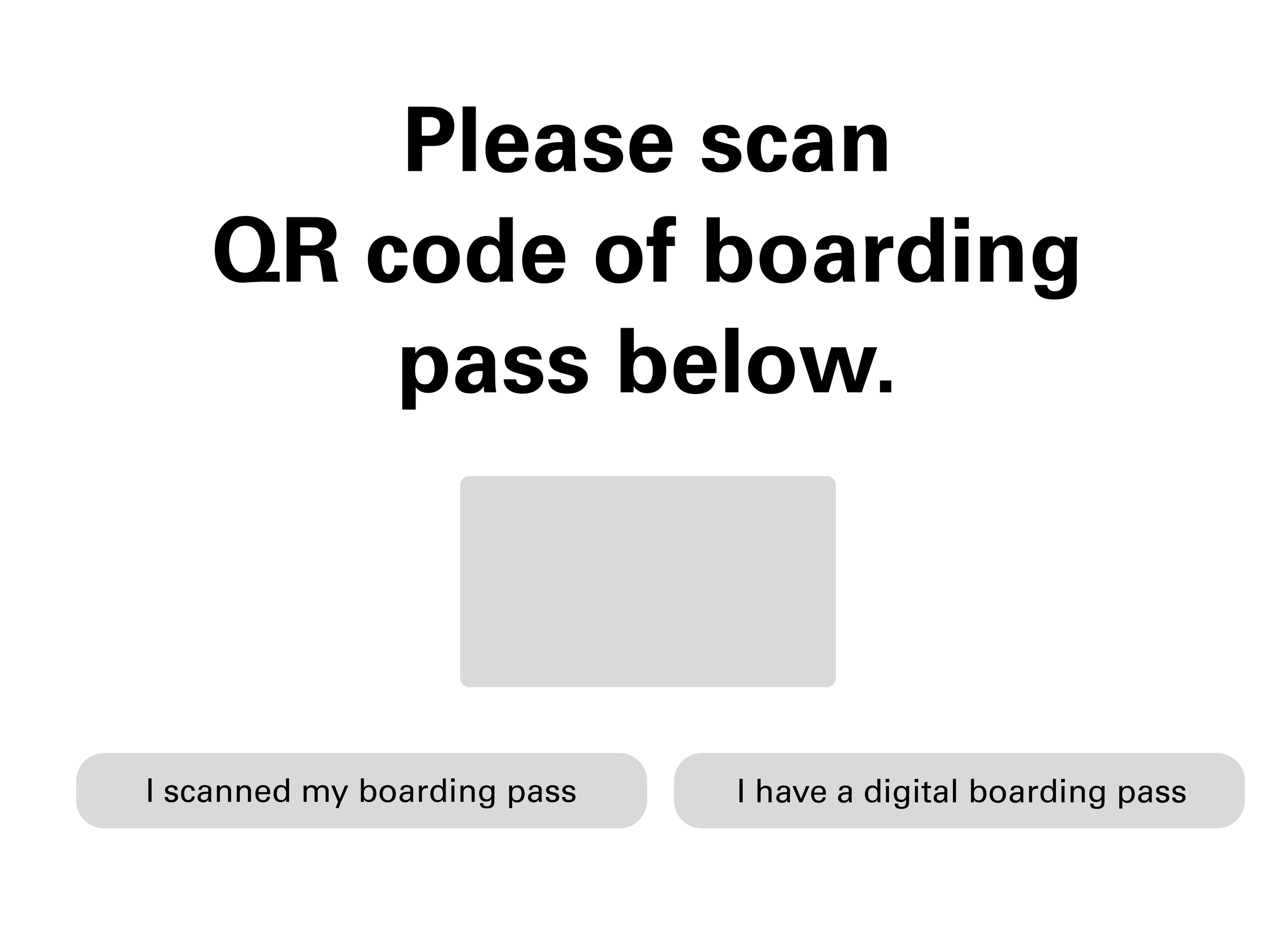 A self service interface (kiosk, phone, etc.) that scans the user boarding pass to access their information and assist them.